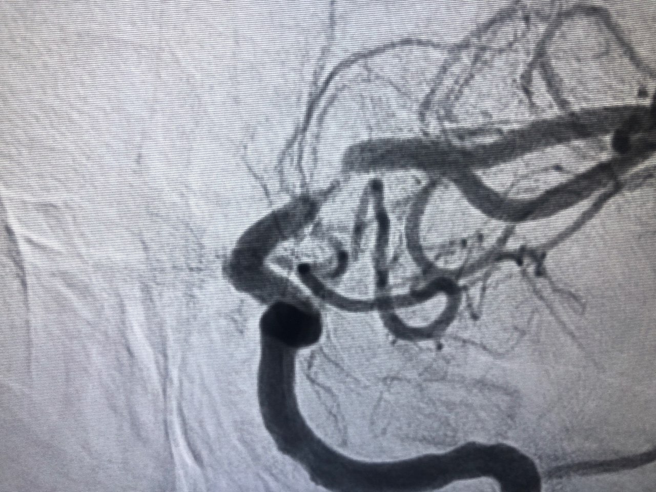 They inserted the apparatus through my right groin which was a bit painful but felt more like extreme pressure. Every time they took an image I experienced horizontal flashes like lightning from left to right in my visual field. Once Dr. Perl hit my optic nerve which caused my entire field of vision to light up. I said “wow!” He said “sorry, that was me.”