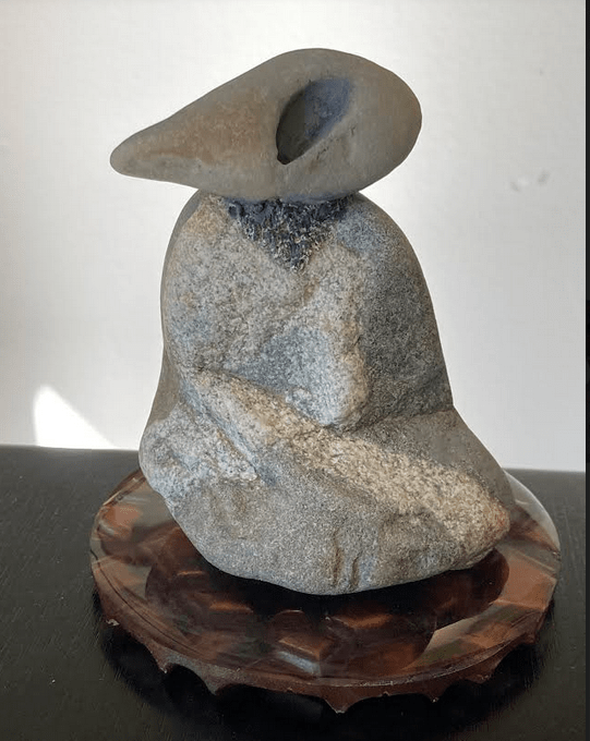 To aid my recovery, I began making small sculptures which are quite different from my previous art. The sculptures just happened as the stroke seems to have unlocked a sculptural ability. Most of my current pieces are small sculptures of cryptid creatures – both cultural cryptids (which probably don’t biologically exist), and cryptozoological animals (which might actually exist but are not scientifically proven) and of imaginary beasts. They are usually made of rocks, shells, gar scales, epoxy clay, Cosclay and polymer clay. Many of them have features that show up only under UV light. Making them has been integral to my healing and exceptionally fun!